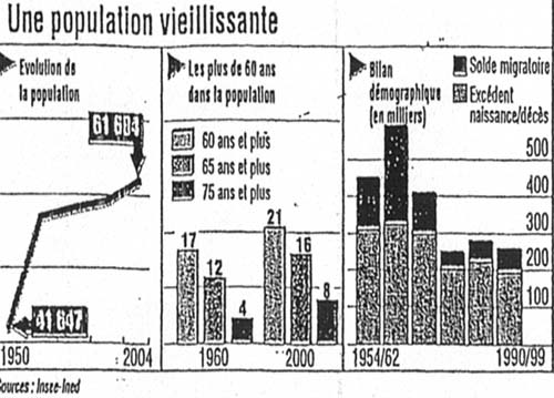 De 1954 à 1999, la France a gagné 16 millions d’habitants. Actuellement, les trois-quarts de sa population vivent dans des agglomérations de plus de 2000 habitants. L’exode rural, très rapide jusqu’en 1975, est très ralenti depuis 25 ans. En 1950, la population rurale représentait 43% de la population totale, elle ne représente plus aujourd’hui que 24,5%.